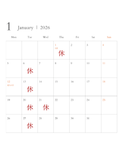 1月の営業予定