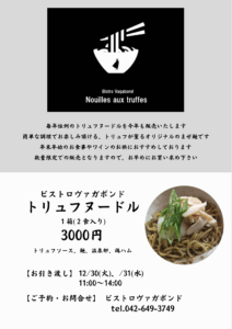 年末恒例のトリュフヌードル、ご予約受付中です。
